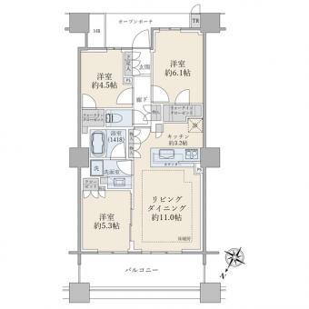 | 間取り | 3LDK | 専有面積 | 68.28m2(20.6坪) 壁芯 |