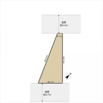 | 接道状況 | 一方 南東約5.7m公道、間口:約7.4m | ||