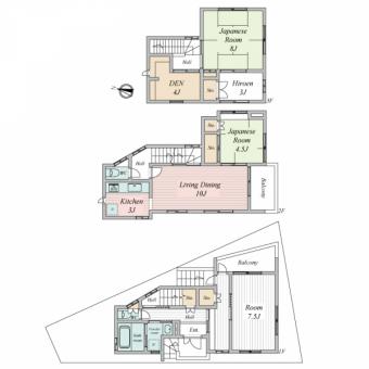 | 土地面積 | 74.75m2(22.6坪) 実測 | 建物延面積 | 126.79m2 |
