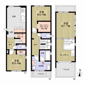| 土地面積 | 77.54m2(23.4坪) 登記簿 | 建物延面積 | 97.27m2 |