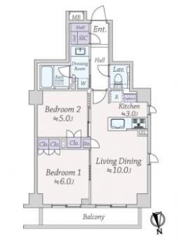 | 間取り | 2LDK | 専有面積 | 54.91m2(16.6坪) 壁芯 |