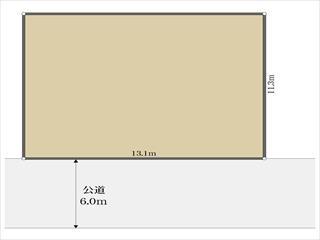 | 接道状況 | 一方 南西約6.0m公道、間口:約13.1m | ||