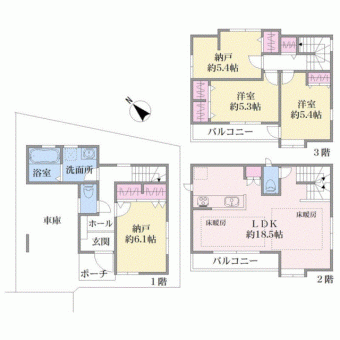 | 土地面積 | 68.03m2(20.5坪) 実測 | 建物延面積 | 100.73m2 |