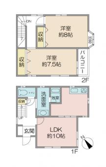 | 土地面積 | 64.93m2(19.6坪) 登記簿 別途私道負担3.83m2 | 建物延面積 | 65.61m2 |