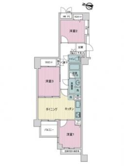 | 間取り | 3DK | 専有面積 | 57.23m2(17.3坪) 壁芯 |