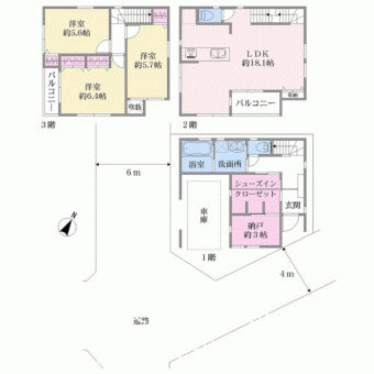 | 土地面積 | 55.81m2(16.8坪) 登記簿 | 建物延面積 | 97.73m2 |