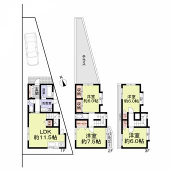 | 土地面積 | 75.56m2(22.8坪) 登記簿 | 建物延面積 | 93.96m2 |
