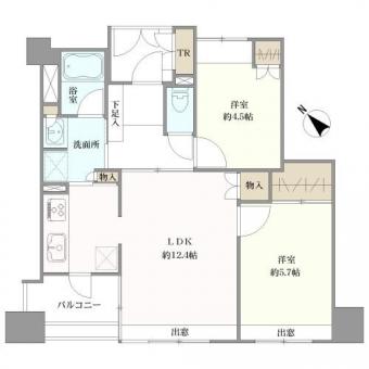 | 間取り | 2LDK | 専有面積 | 55.50m2(16.7坪) 壁芯 |