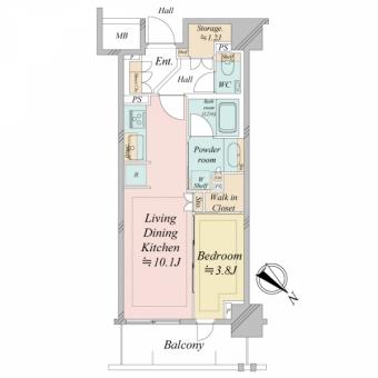 | 間取り | 1LDK | 専有面積 | 38.36m2(11.6坪) 壁芯 |