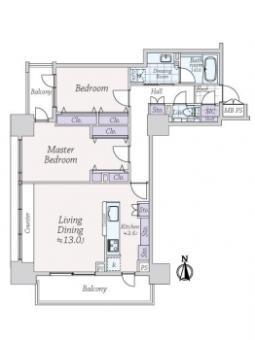| 間取り | 2LDK | 専有面積 | 74.09m2(22.4坪) 壁芯 |