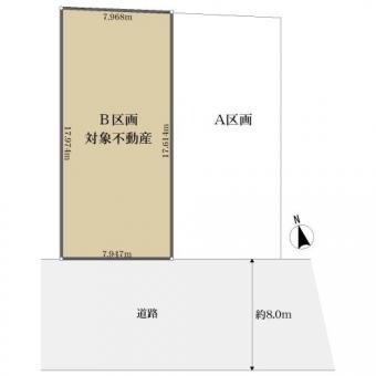 | 接道状況 | 一方 南西約8.0m公道、間口:約7.9m | ||