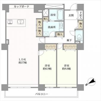 | 間取り | 2LDK | 専有面積 | 102.23m2(30.9坪) 壁芯 |