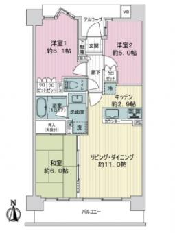 | 間取り | 3LDK | 専有面積 | 64.34m2(19.4坪) 壁芯 |