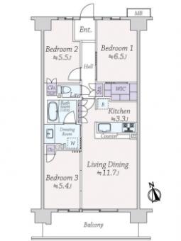 | 間取り | 3LDK | 専有面積 | 70.80m2(21.4坪) 壁芯 |