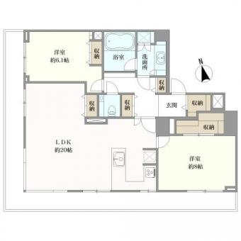 | 間取り | 2LDK | 専有面積 | 85.33m2(25.8坪) 壁芯 |