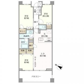 | 間取り | 3LDK+WIC | 専有面積 | 73.72m2(22.3坪) 壁芯 |