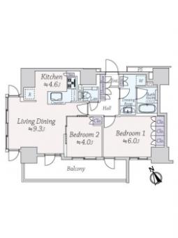 | 間取り | 2LDK | 専有面積 | 55.61m2(16.8坪) 壁芯 |