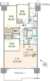 | 間取り | 3LDK | 専有面積 | 95.57m2(28.9坪) 壁芯 |