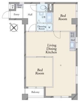 | 間取り | 2LDK | 専有面積 | 60.49m2(18.2坪) 壁芯 |