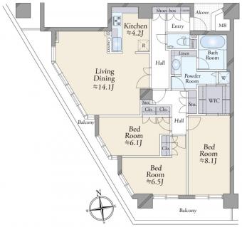 | 間取り | 3LDK | 専有面積 | 95.85m2(28.9坪) 壁芯 |