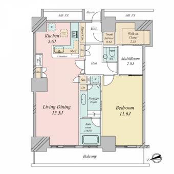 | 間取り | 1LDK | 専有面積 | 86.69m2(26.2坪) 壁芯 |