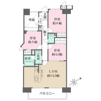| 間取り | 3LDK | 専有面積 | 69.07m2(20.8坪) 壁芯 |