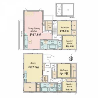 | 土地面積 | 117.95m2(35.6坪) 登記簿 | 建物延面積 | 122.54m2 |