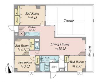 | バルコニー | 14.96m2 | 主要採光方向 | 北 |