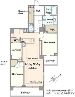 | 間取り | 3LDK | 専有面積 | 93.96m2(28.4坪) 壁芯 |