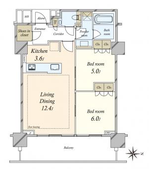 | 間取り | 2LDK | 専有面積 | 60.74m2(18.3坪) 壁芯 |