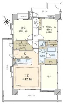 | 間取り | 2SLDK | 専有面積 | 77.12m2(23.3坪) 壁芯 |
