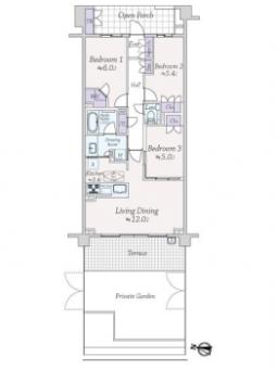 | 間取り | 3LDK | 専有面積 | 73.45m2(22.2坪) 壁芯 |