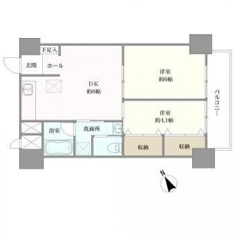 | 間取り | 2DK | 専有面積 | 43.33m2(13.1坪) 壁芯 |