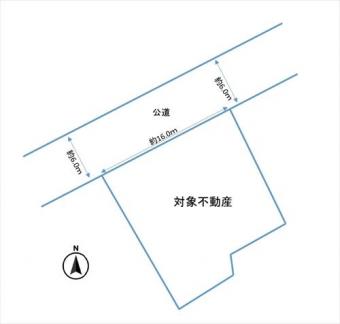 | 接道状況 | 一方 北西約6.0m公道、間口:約16.0m | ||