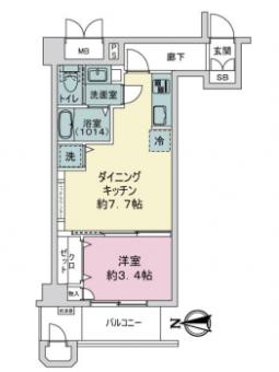 | 間取り | 1DK | 専有面積 | 31.84m2(9.6坪) 壁芯 |