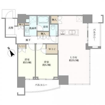 | 間取り | 2LDK+WIC | 専有面積 | 76.89m2(23.2坪) 壁芯 |