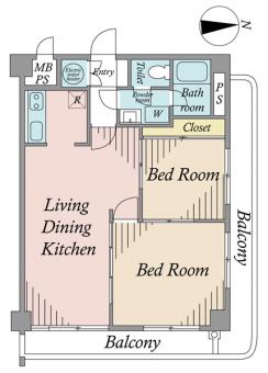 | 間取り | 2LDK | 専有面積 | 59.76m2(18.0坪) 壁芯 |
