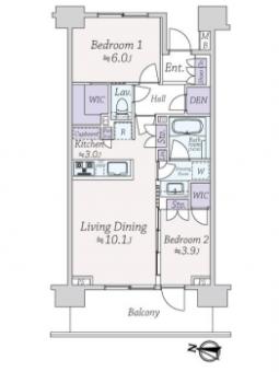 | 間取り | 2LDK | 専有面積 | 55.35m2(16.7坪) 壁芯 |
