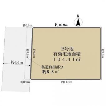 | 土地面積 | 104.40m2(31.5坪) 実測 別途私道負担約8.8m2 | ||