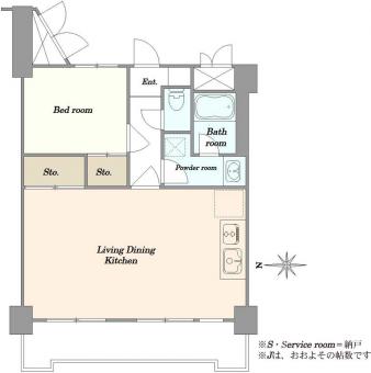 | 間取り | 1LDK | 専有面積 | 44.80m2(13.5坪) 壁芯 |