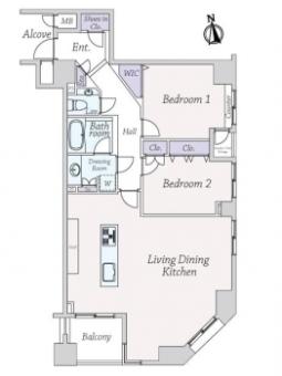 | 間取り | 2LDK | 専有面積 | 84.03m2(25.4坪) 壁芯 |