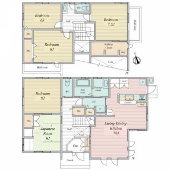 | 土地面積 | 268.24m2(81.1坪) 実測 | 建物延面積 | 133.36m2 |
