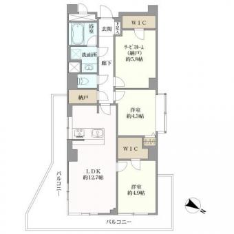| 間取り | 2SLDK+WIC(S=納戸、WIC=ウォークインクローゼット) | 専有面積 | 66.68m2(20.1坪) 壁芯 |