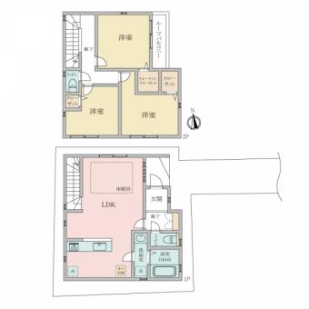 | 土地面積 | 92.55m2(27.9坪) 登記簿 | 建物延面積 | 83.72m2 |