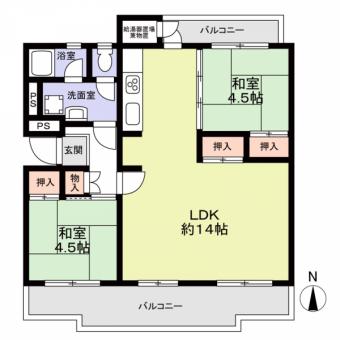 | 間取り | 2LDK | 専有面積 | 57.13m2(17.2坪) 壁芯 |