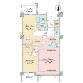 | 間取り | 2LDK | 専有面積 | 102.64m2(31.0坪) 壁芯 |