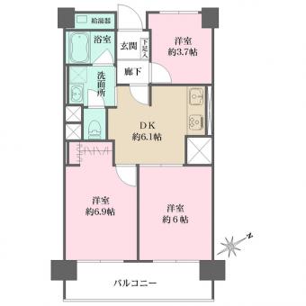 | 間取り | 3DK | 専有面積 | 50.60m2(15.3坪) 壁芯 |