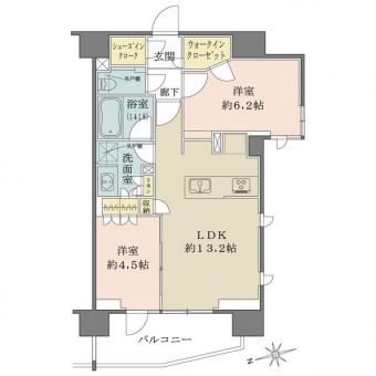 | 間取り | 2LDK | 専有面積 | 56.49m2(17.0坪) 壁芯 |
