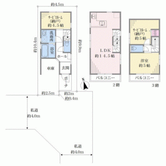 | 土地面積 | 46.57m2(14.0坪) 登記簿 別途私道負担57.94m2 | 建物延面積 | 70.22m2 |