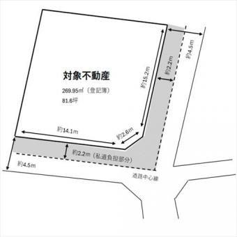 | 土地面積 | 269.95m2(81.6坪) 登記簿 別途私道負担約81.0m2 | ||